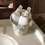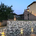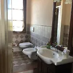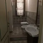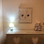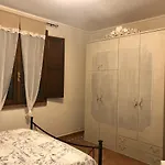 Furnished with a sofa and a work desk, Casa In Campagna A Due Passi Dal Mare Apartment is equipped with a satellite television, ironing facilities, and conveniences like an air conditioner. A bathroom has a bidet, a separate toilet, and a shower, as well as a hairdryer and bathrobes.